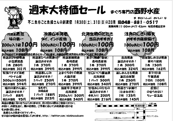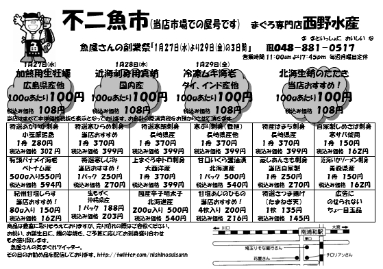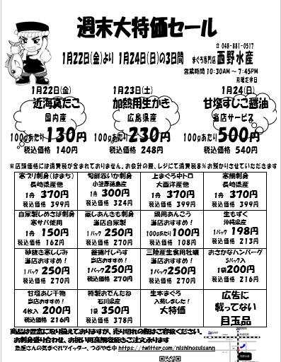 西野水産です!街の魚屋さんです。刺身と鮮魚はココでどうぞ!