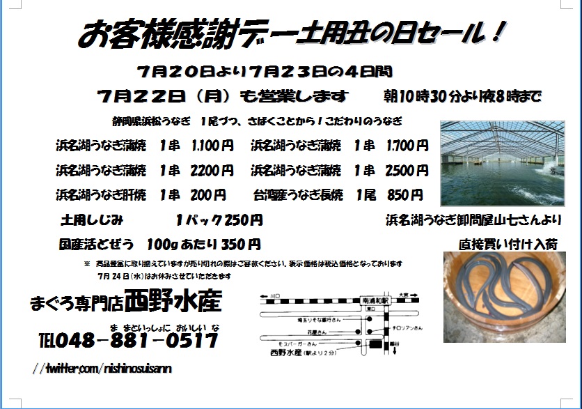 西野水産です!街の魚屋さんです。刺身と鮮魚はココでどうぞ!