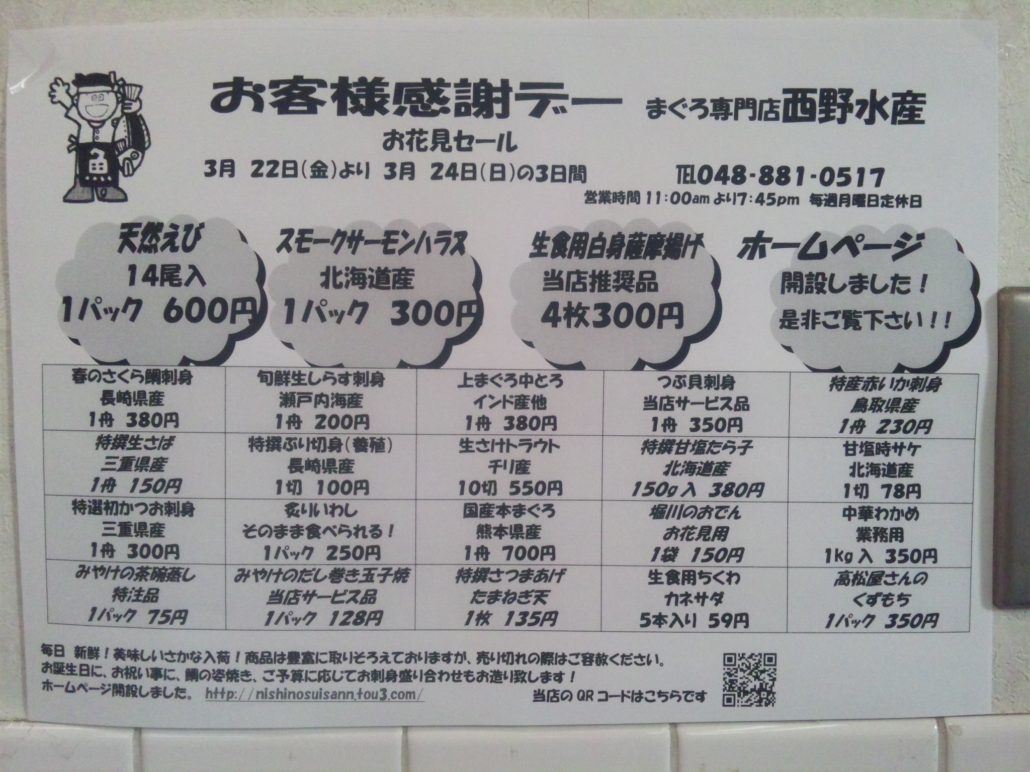 西野水産です!街の魚屋さんです。刺身と鮮魚はココでどうぞ!