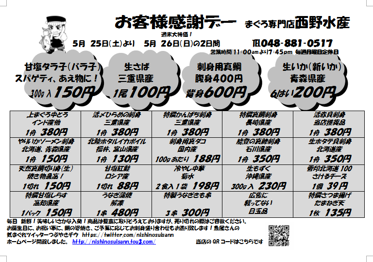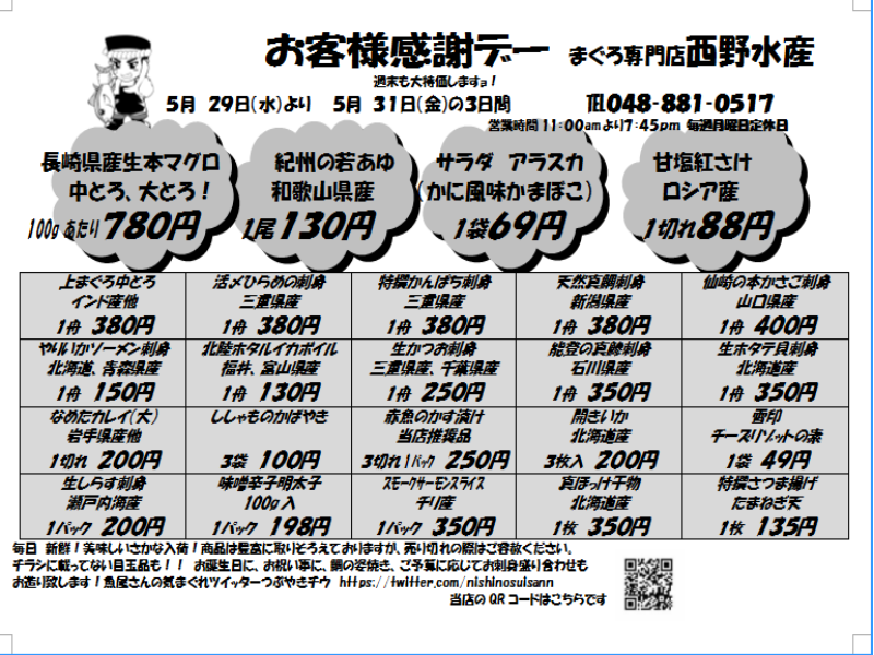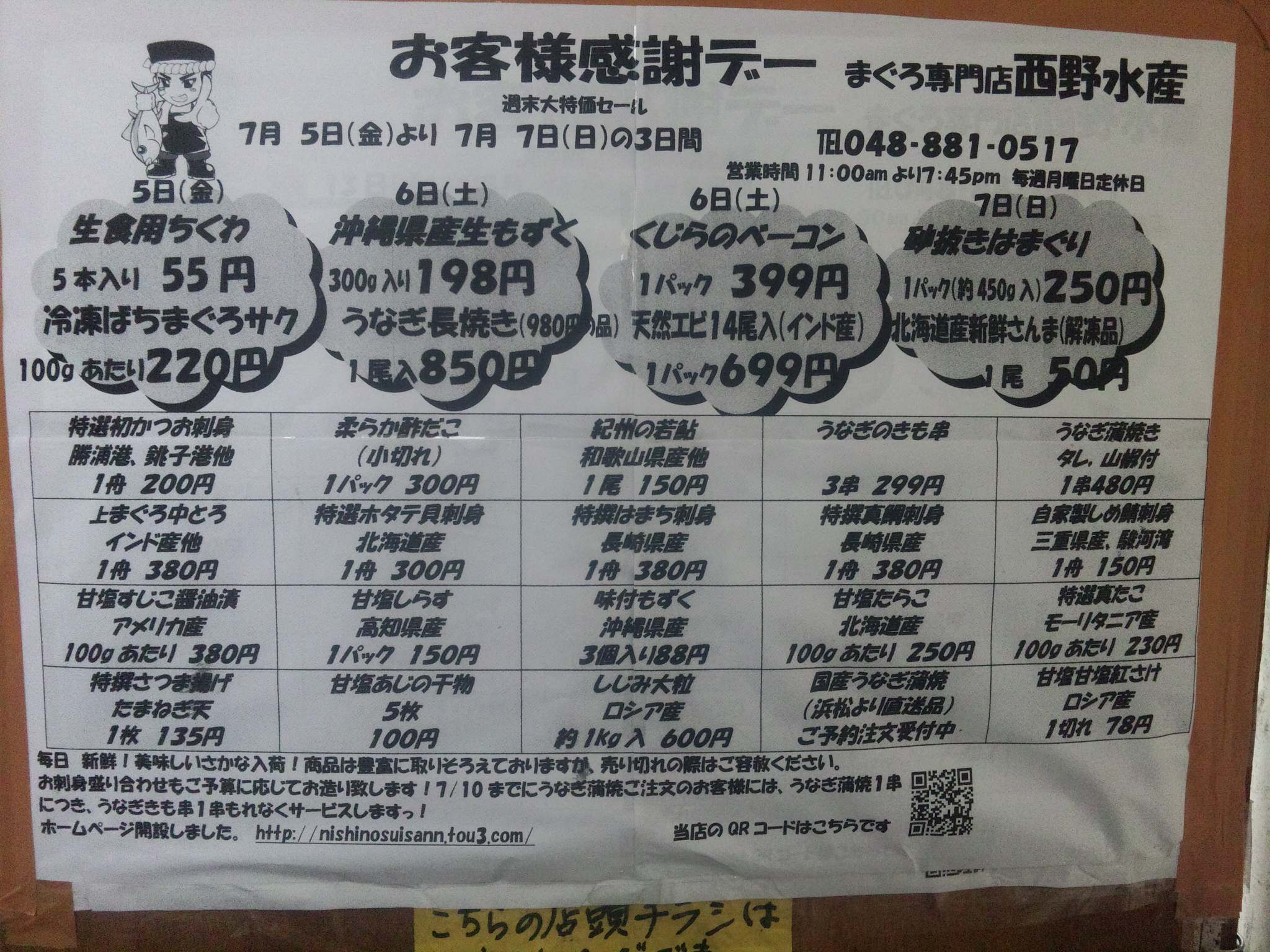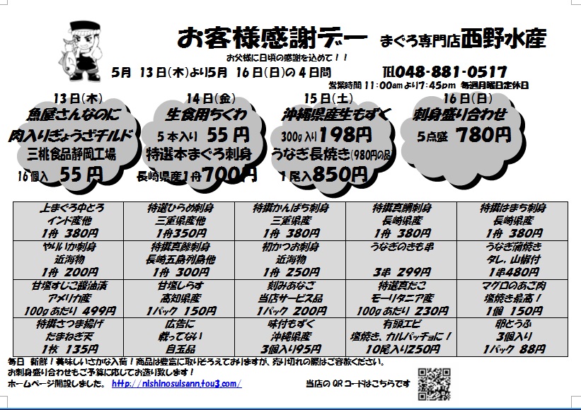 西野水産です!街の魚屋さんです。刺身と鮮魚はココでどうぞ!