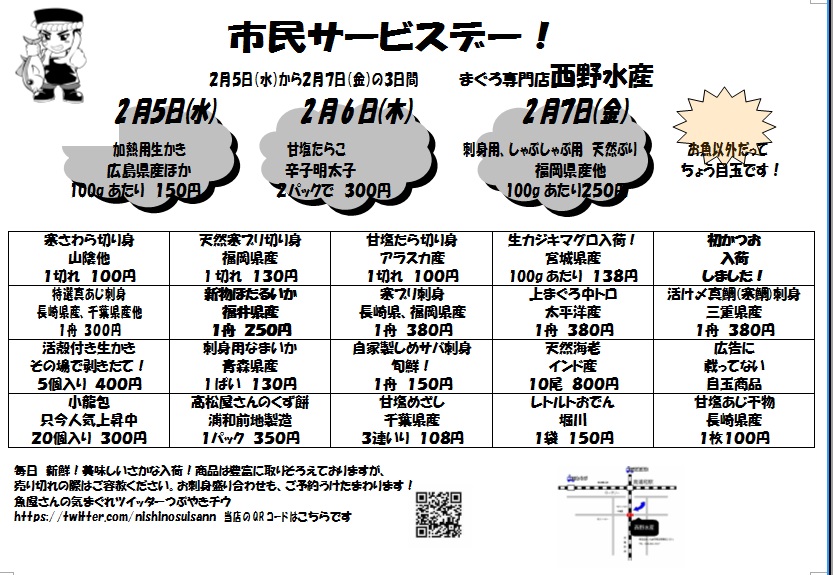 本日より市民サービスデー! 毎週末!!週末大特価セール開催中