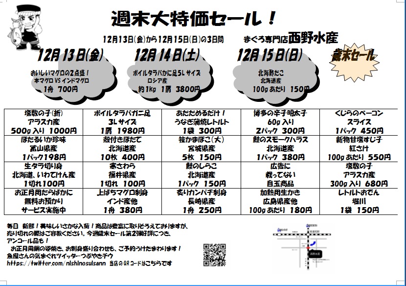 歳末セール!数の子、タラバが大特価(*^^)v