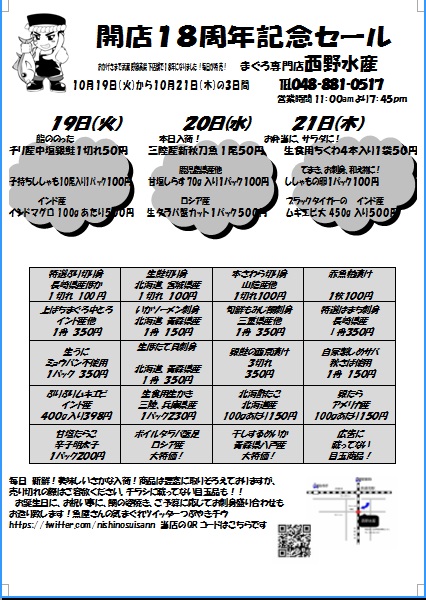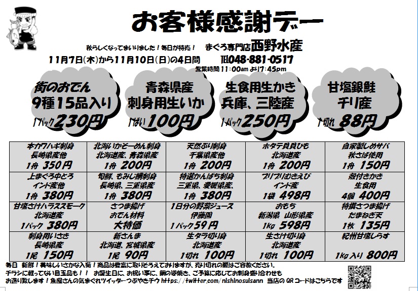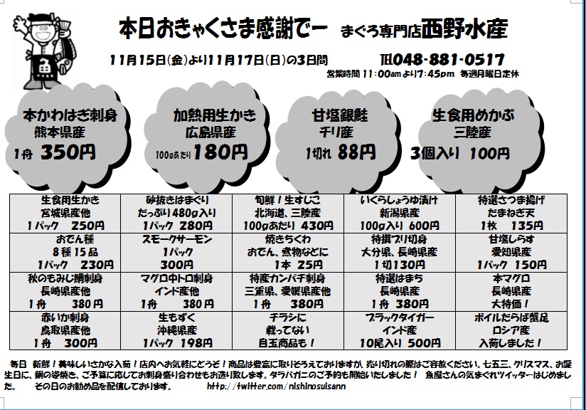 西野水産です!街の魚屋さんです。刺身と鮮魚はココでどうぞ!
